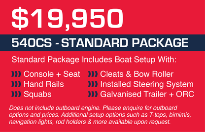 The 540cs is a heavy duty, small commercial panga. We have personally used this model for many years of trouble-free fishing and boating. Small and light enough for one person to easily launch and retrieve off the beach. Easy to tow around with any medium size vehicle. Stable, seaworthy, practical and fuel efficient boat for 1-3 people - fishing. Great for running through the surf with large self draining scuppers on the deck.